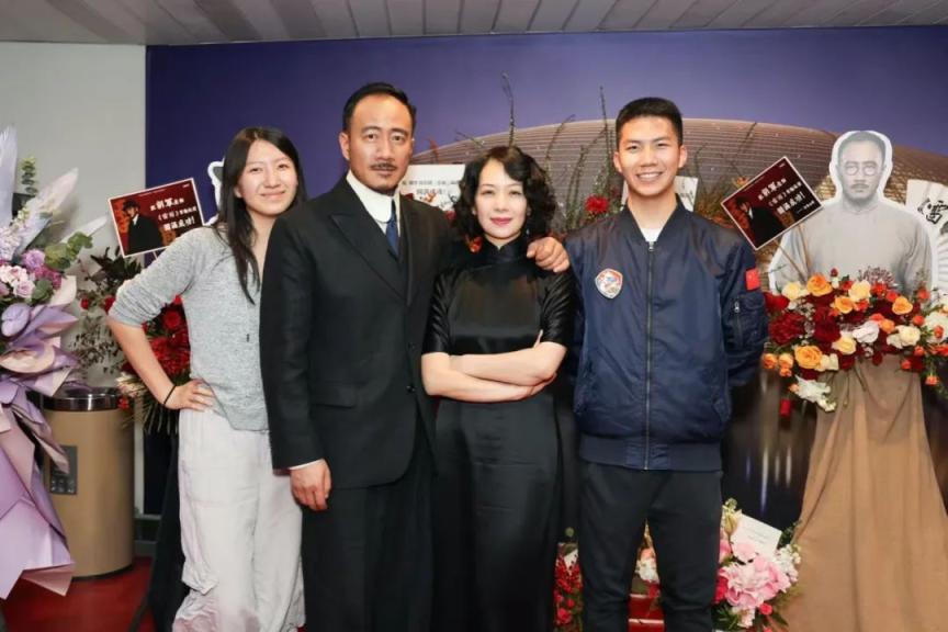 胡军、卢芳和女儿、儿子在国家大剧院后台合影